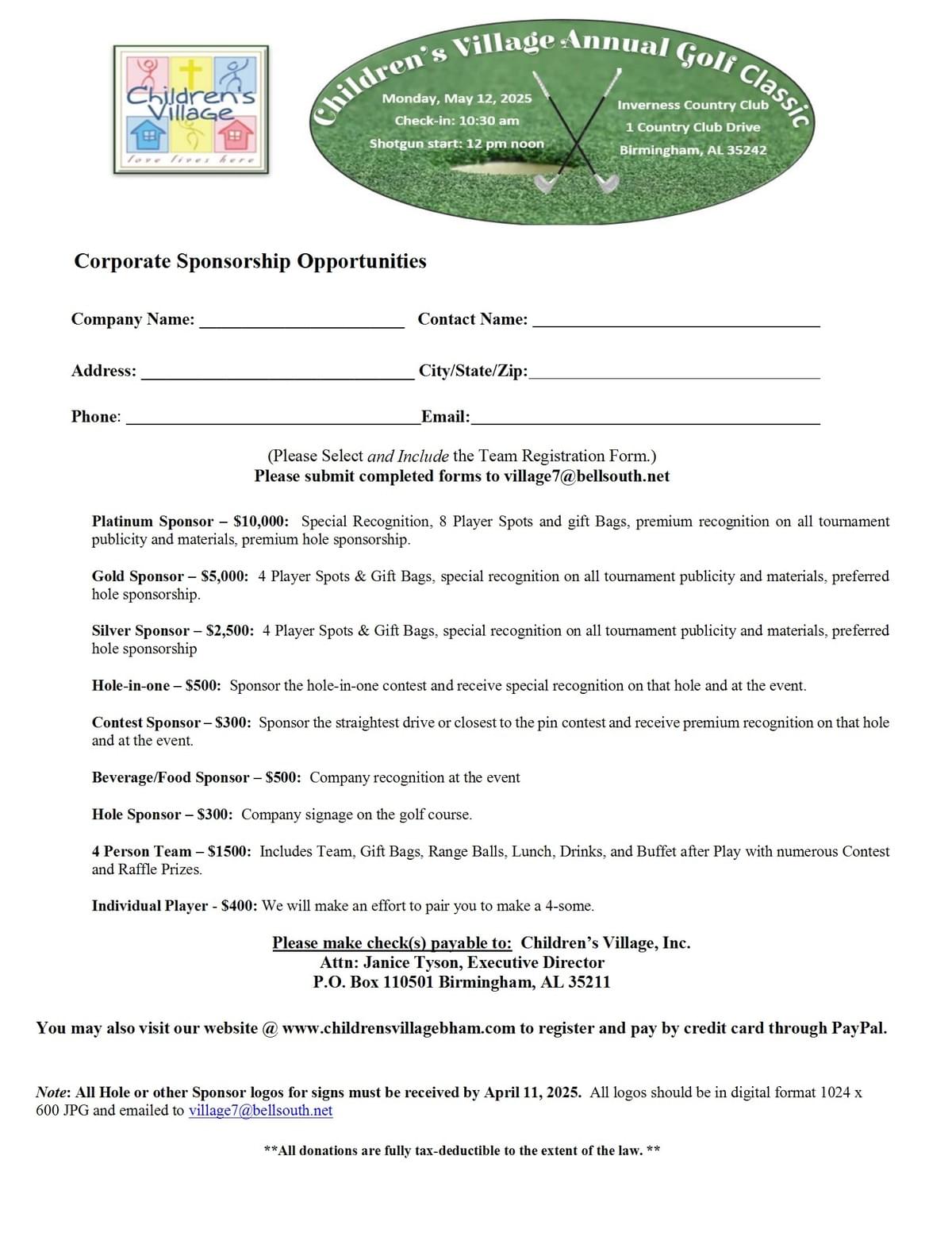 All donations are greatly appreciated and tax deductible. No amount is too small. Please invite your friends to support Children’s Village, Inc.